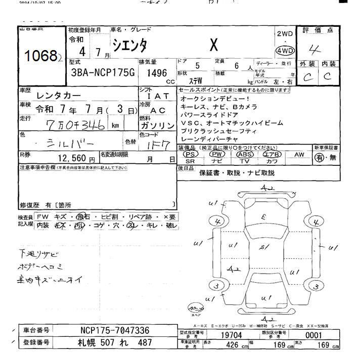 TOYOTA SIENTA - лот 1068