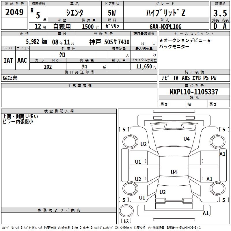 TOYOTA SIENTA - лот 2049