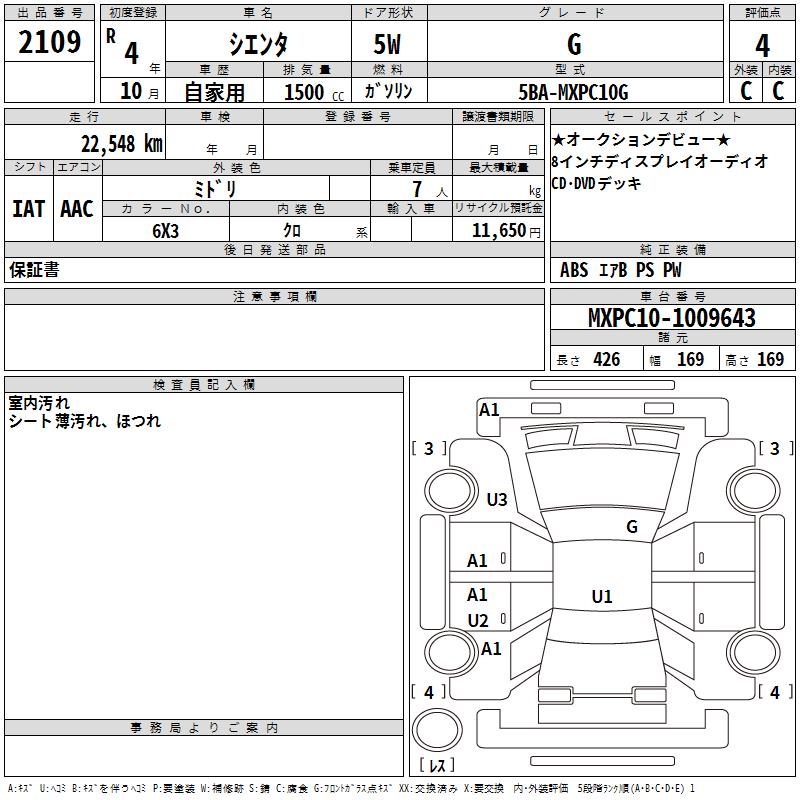 TOYOTA SIENTA - лот 2109