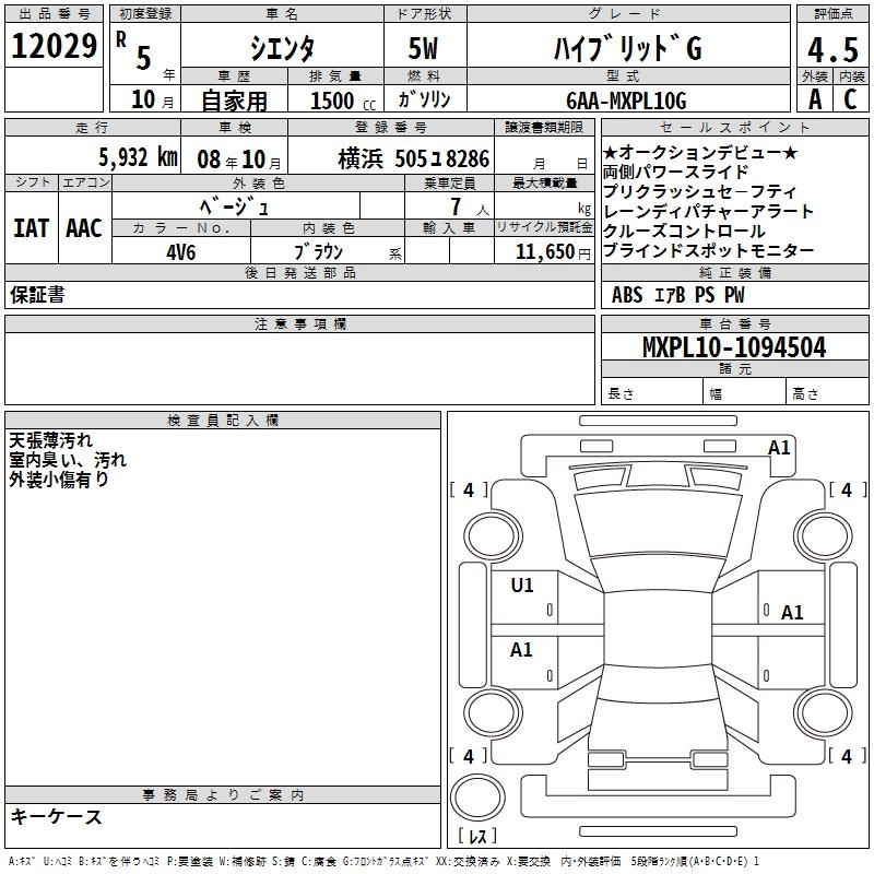 TOYOTA SIENTA - лот 12029
