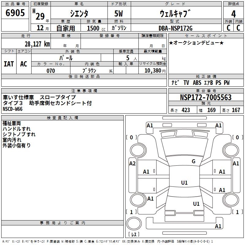 TOYOTA SIENTA - лот 6905