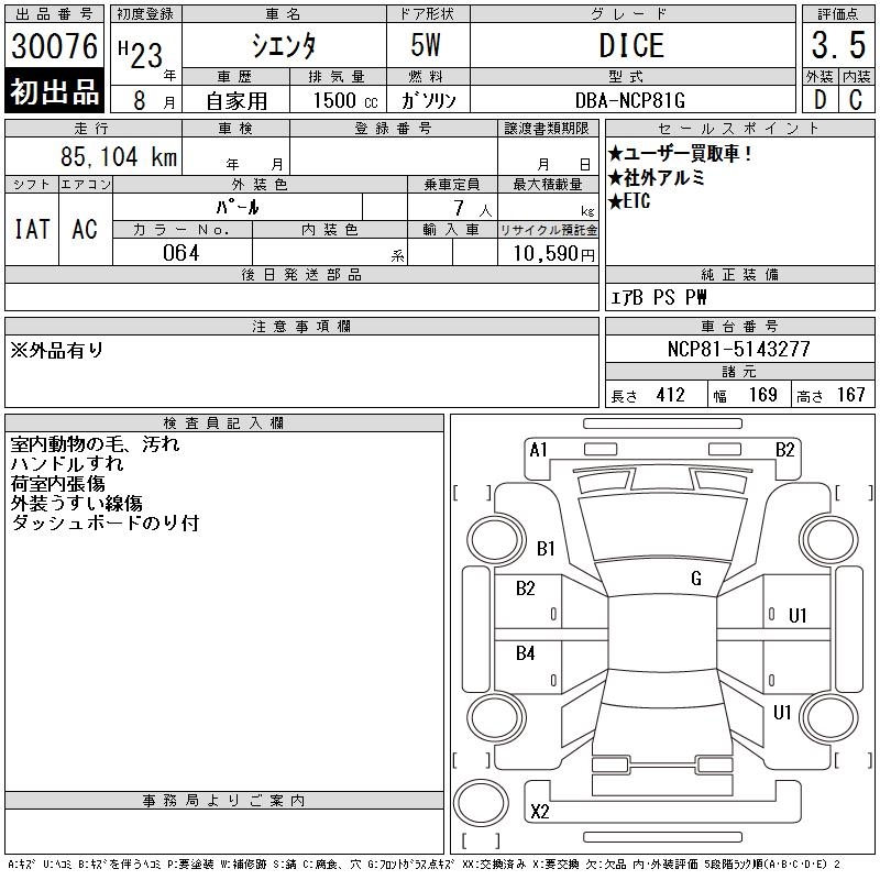 TOYOTA SIENTA - лот 30076