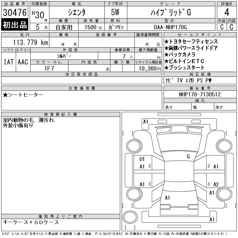 TOYOTA SIENTA - лот 30476