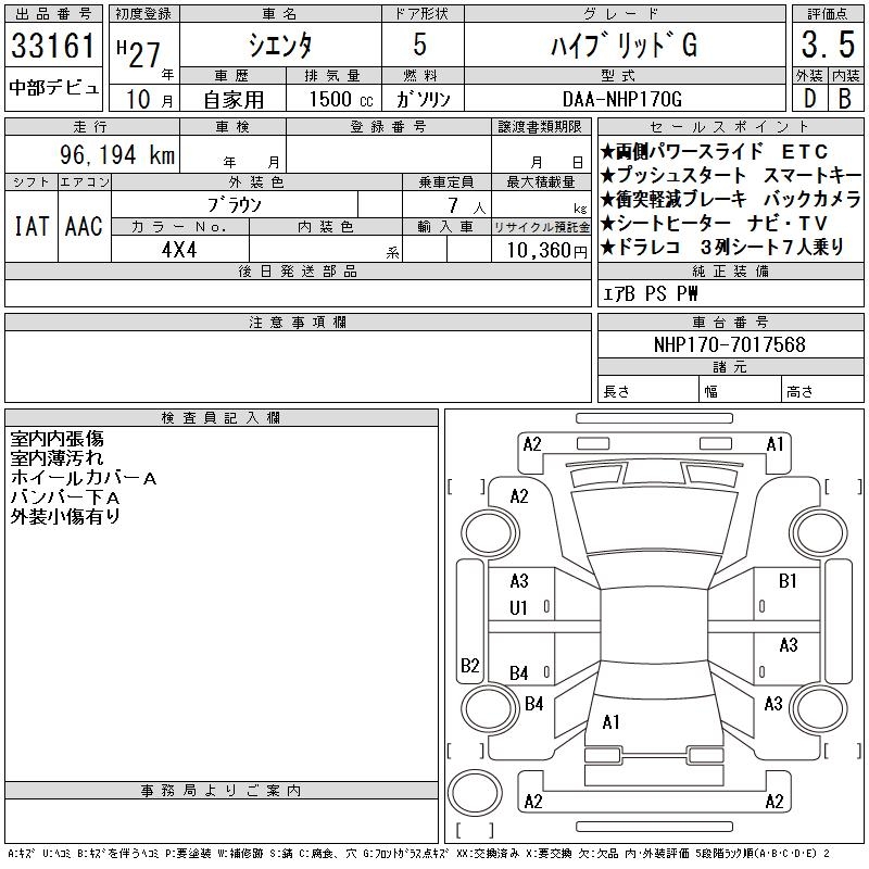 TOYOTA SIENTA - лот 33161