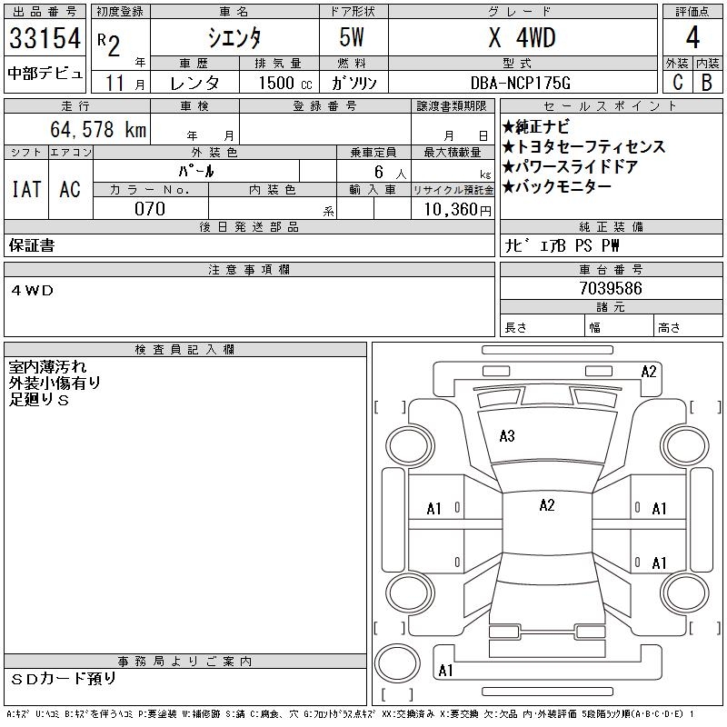 TOYOTA SIENTA - лот 33154
