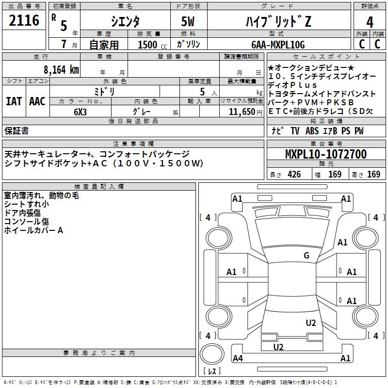 TOYOTA SIENTA - лот 2116