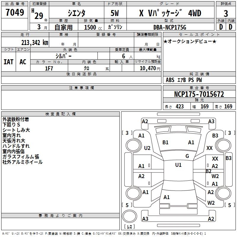 TOYOTA SIENTA - лот 7049