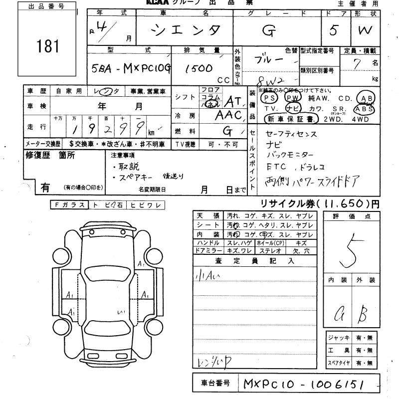TOYOTA SIENTA - лот 181