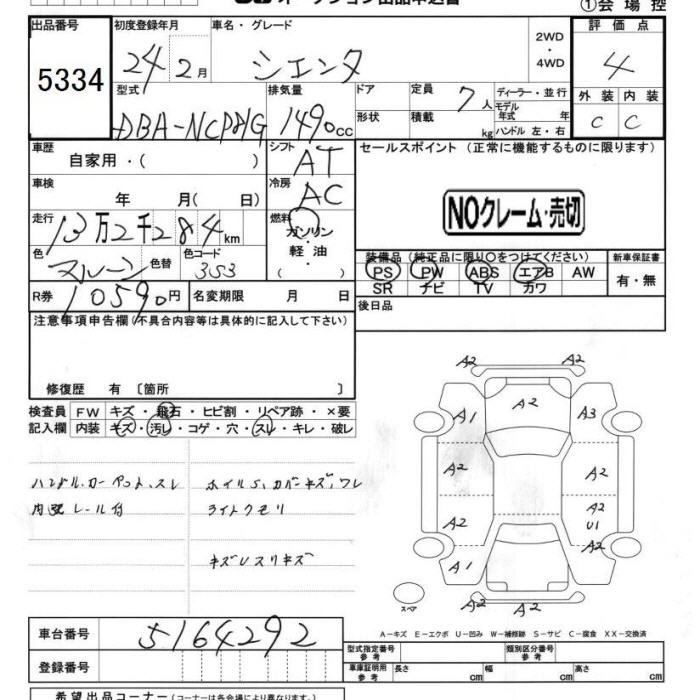 TOYOTA SIENTA - лот 5334
