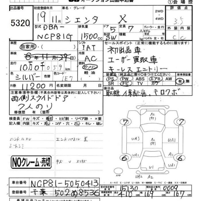 TOYOTA SIENTA - лот 5320