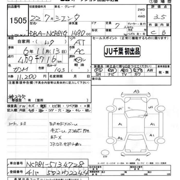 TOYOTA SIENTA - лот 1505
