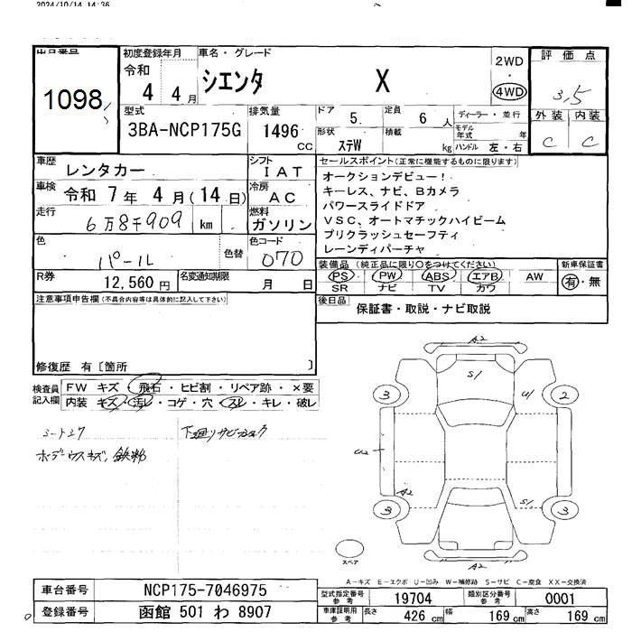 TOYOTA SIENTA - лот 1098