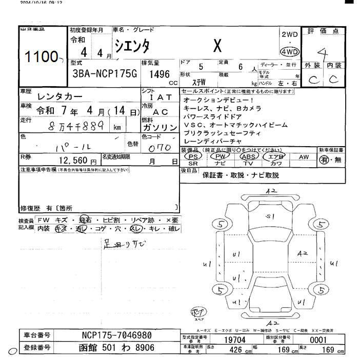 TOYOTA SIENTA - лот 1100