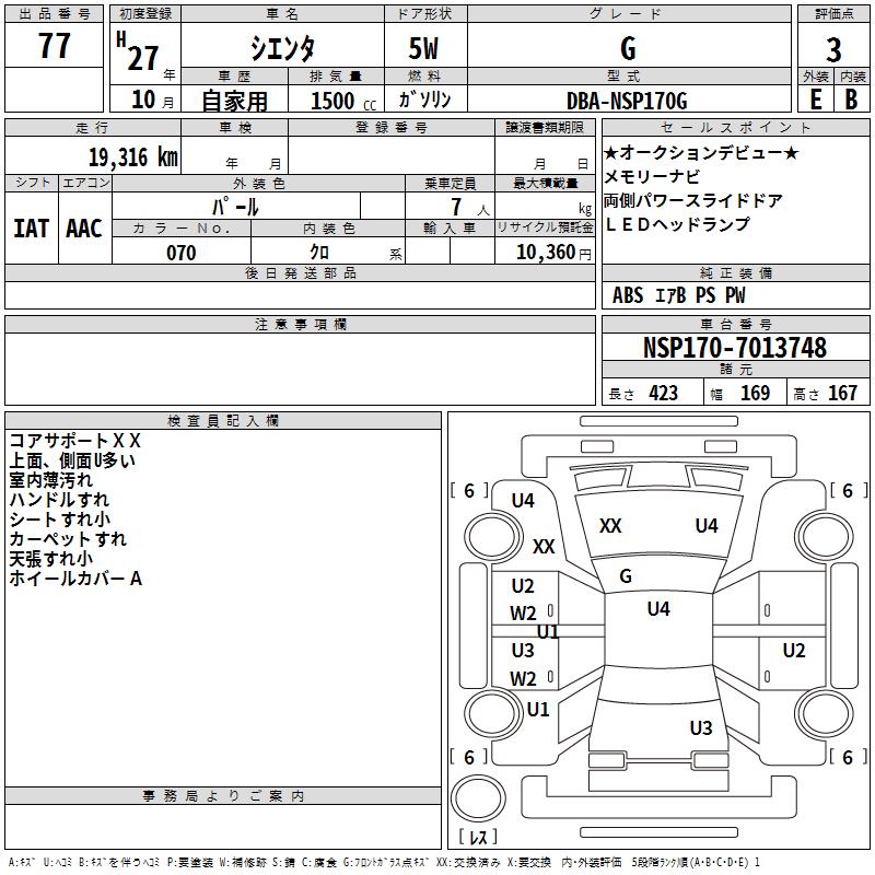 TOYOTA SIENTA - лот 77