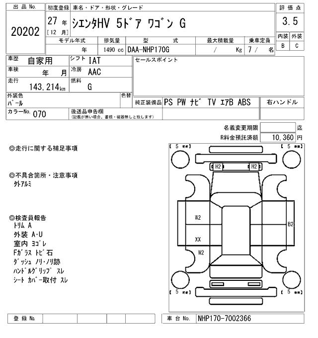 TOYOTA SIENTA - лот 20202