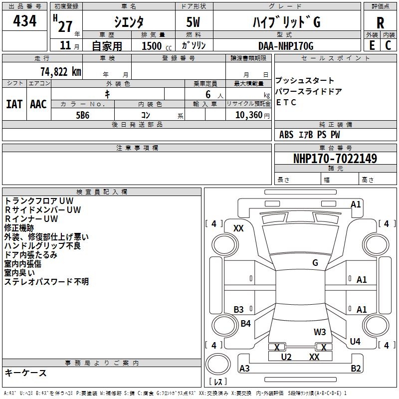TOYOTA SIENTA - лот 434