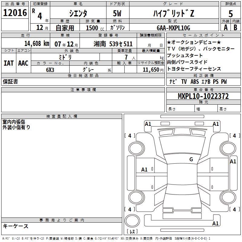 TOYOTA SIENTA - лот 12016