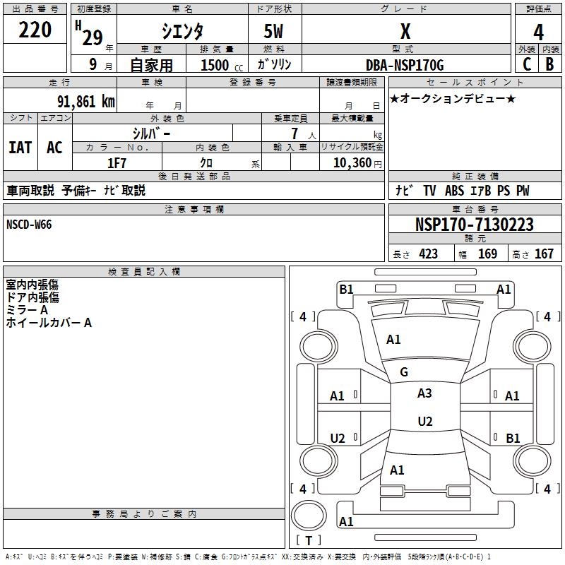 TOYOTA SIENTA - лот 220