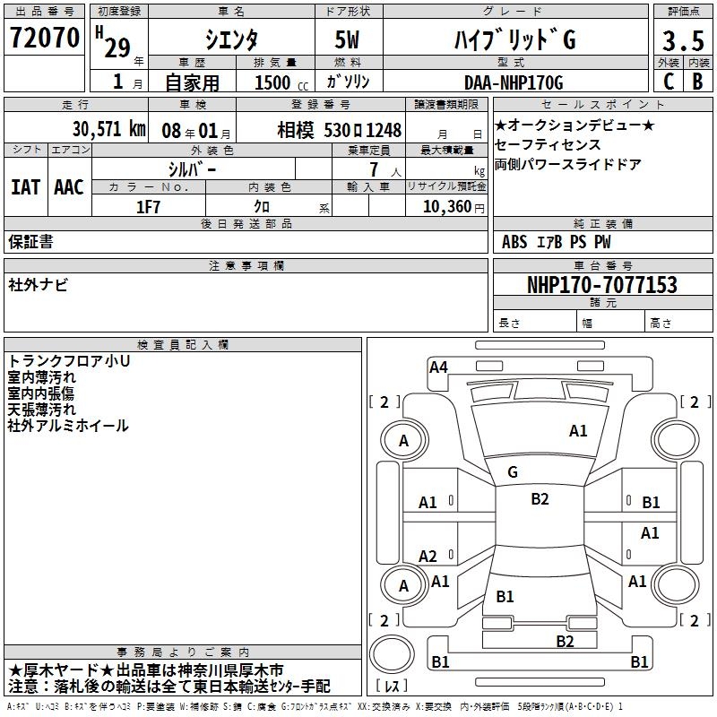 TOYOTA SIENTA - лот 72070