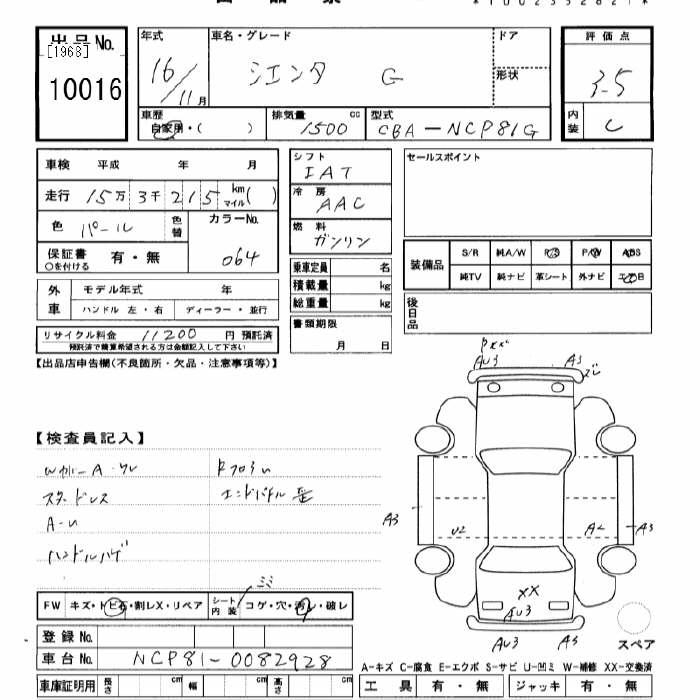 TOYOTA SIENTA - лот 10016
