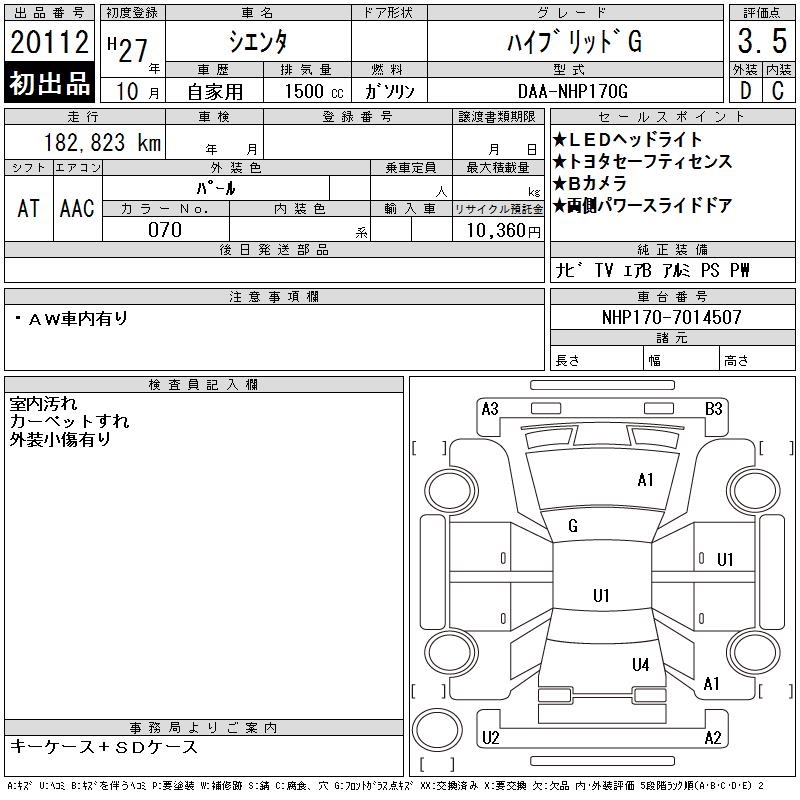 TOYOTA SIENTA - лот 20112
