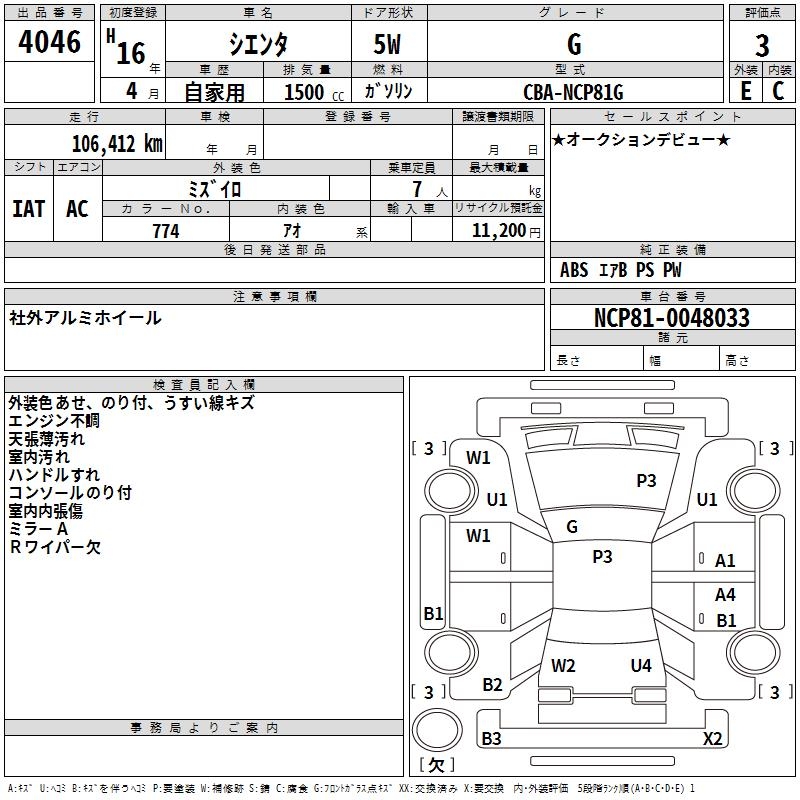 TOYOTA SIENTA - лот 4046