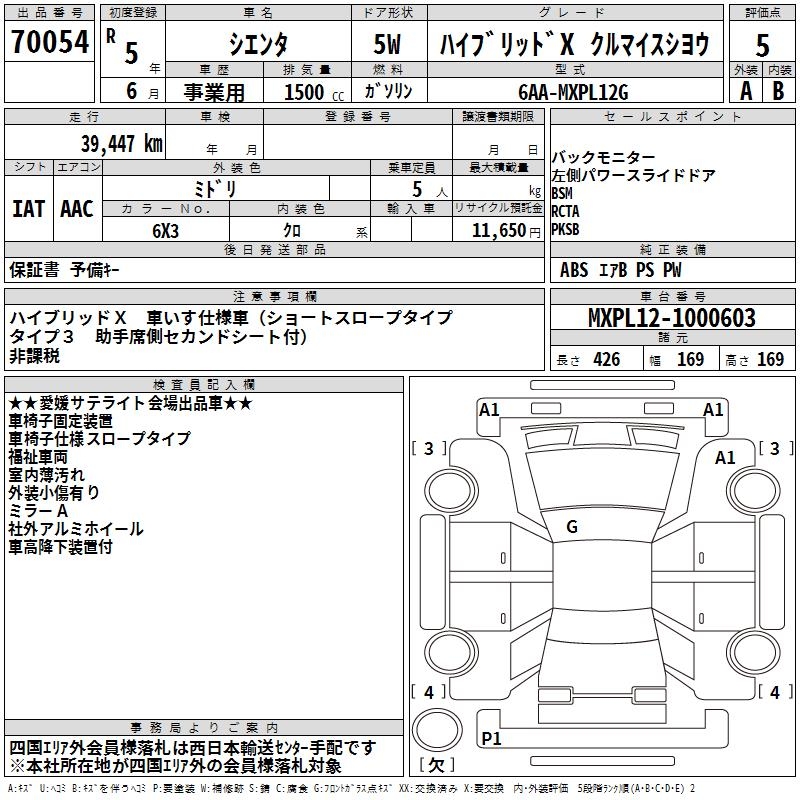 TOYOTA SIENTA - лот 70054
