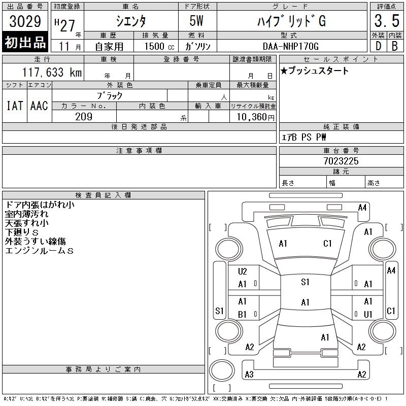 TOYOTA SIENTA - лот 3029