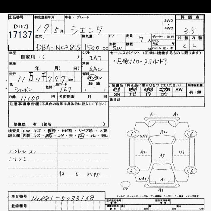 TOYOTA SIENTA - лот 17137