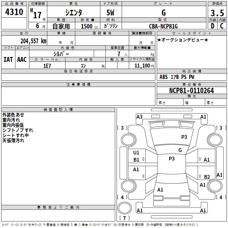 TOYOTA SIENTA - лот 4310