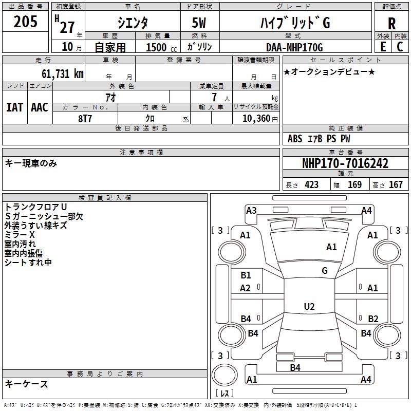 TOYOTA SIENTA - лот 205