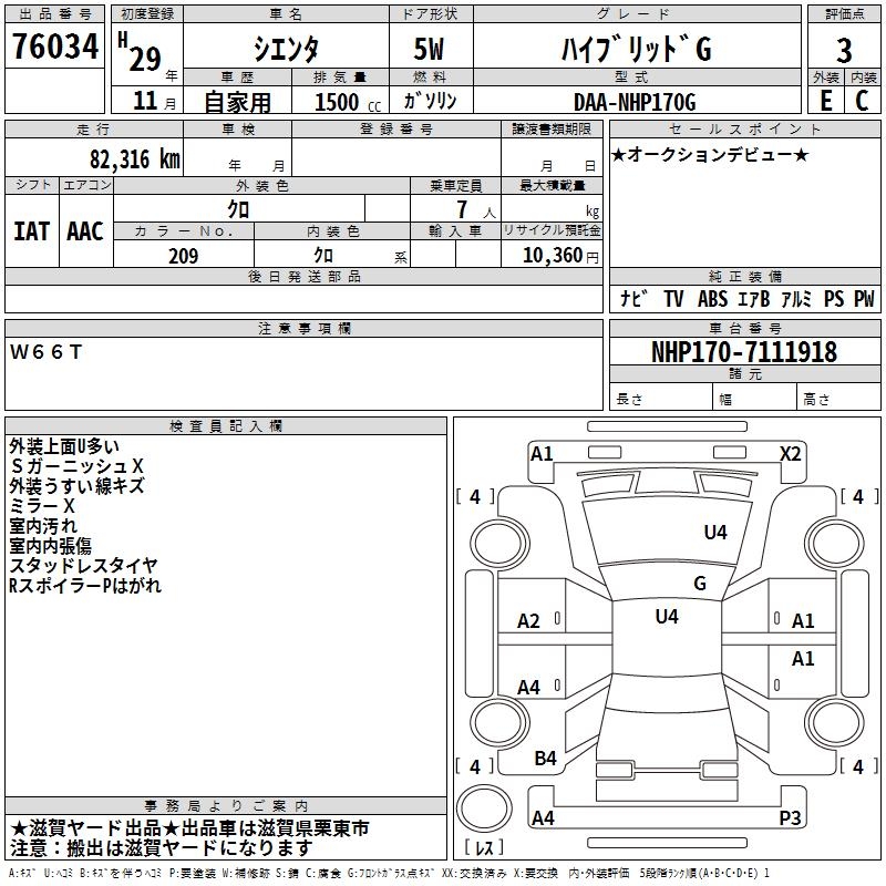 TOYOTA SIENTA - лот 76034