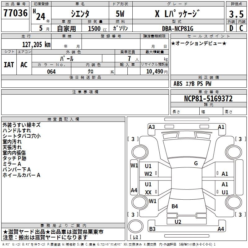 TOYOTA SIENTA - лот 77036
