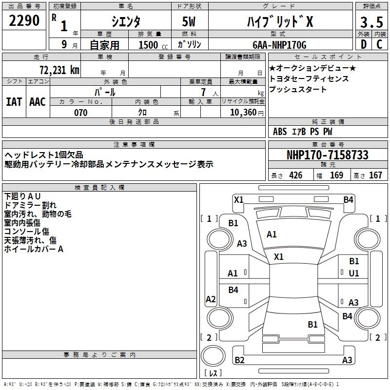 TOYOTA SIENTA - лот 2290