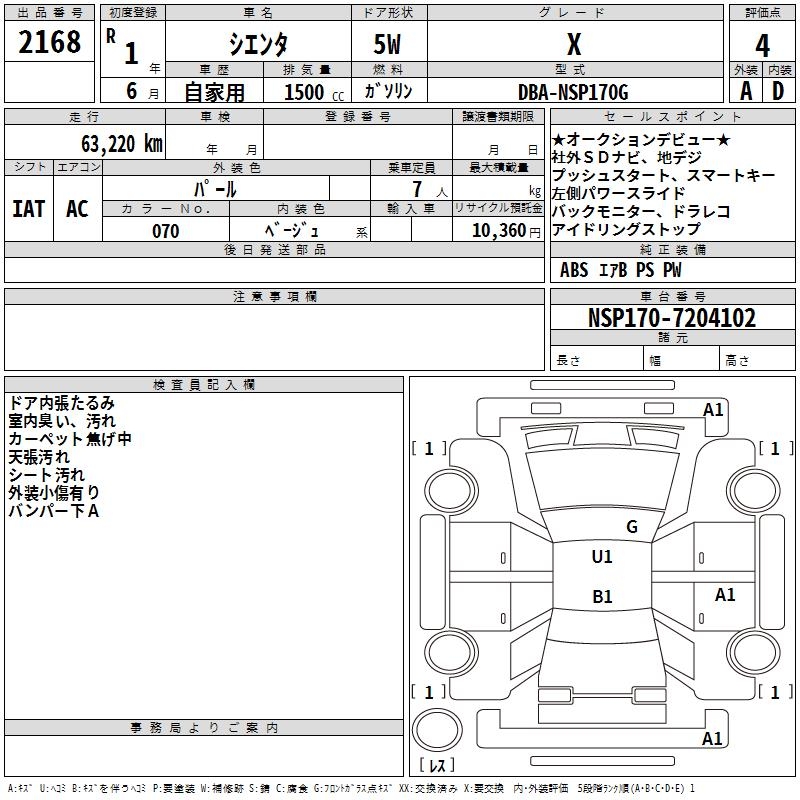 TOYOTA SIENTA - лот 2168