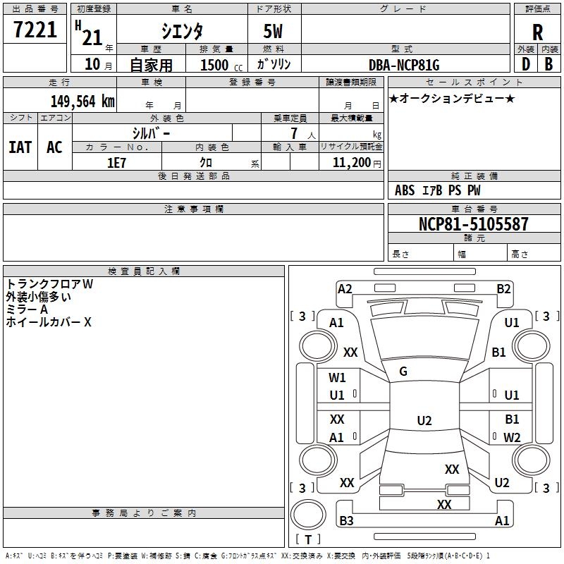 TOYOTA SIENTA - лот 7221