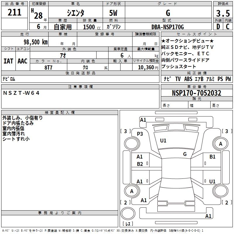 TOYOTA SIENTA - лот 211