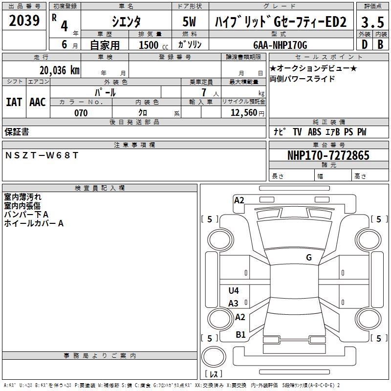 TOYOTA SIENTA - лот 2039