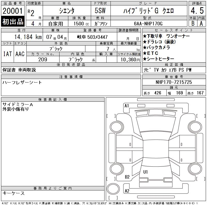 TOYOTA SIENTA - лот 20001