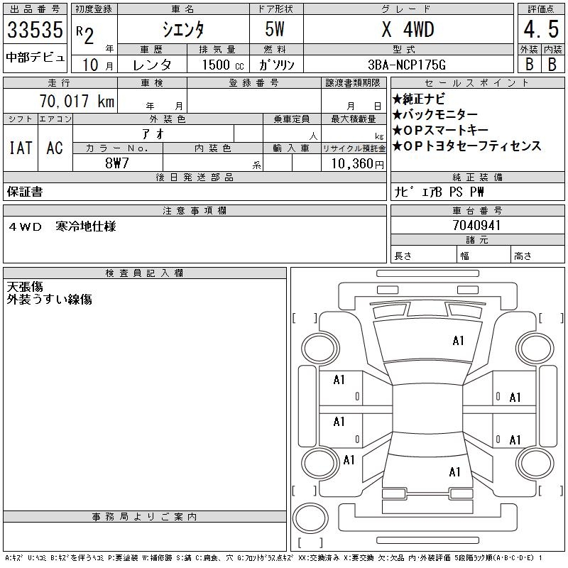 TOYOTA SIENTA - лот 33535
