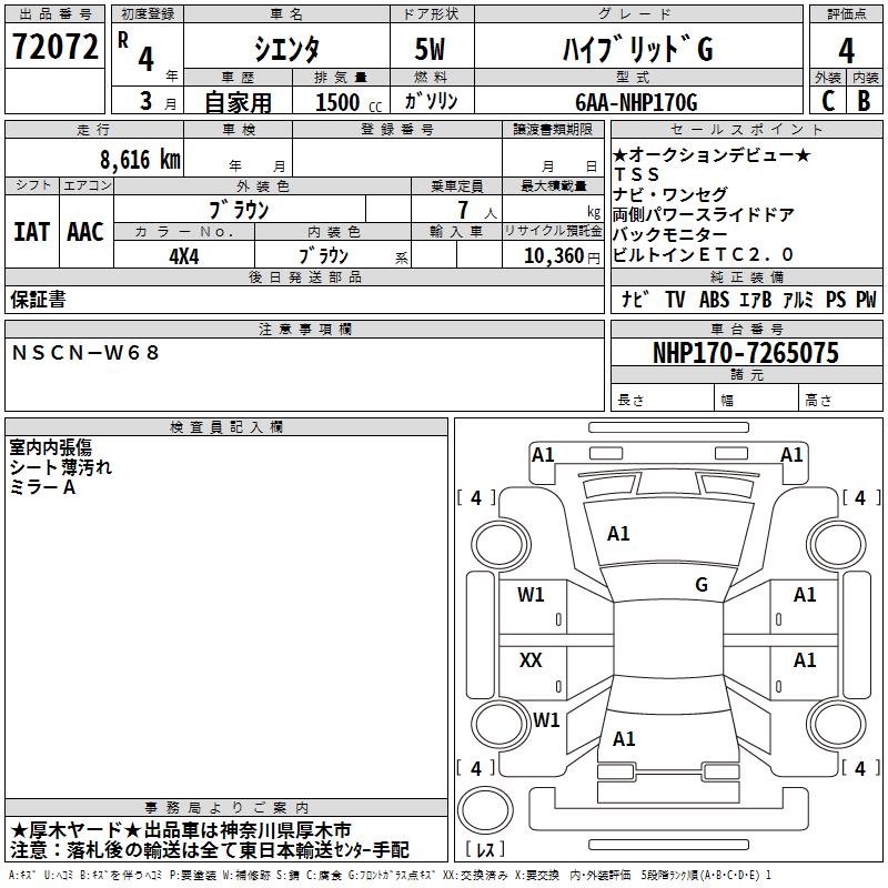 TOYOTA SIENTA - лот 72072