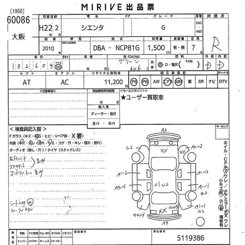 TOYOTA SIENTA - лот 60086