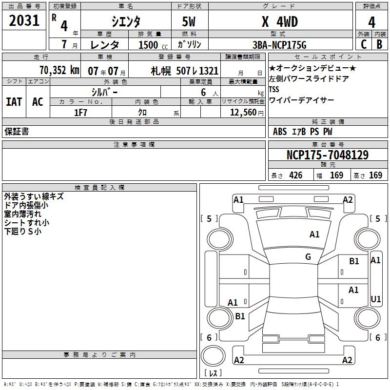 TOYOTA SIENTA - лот 2031