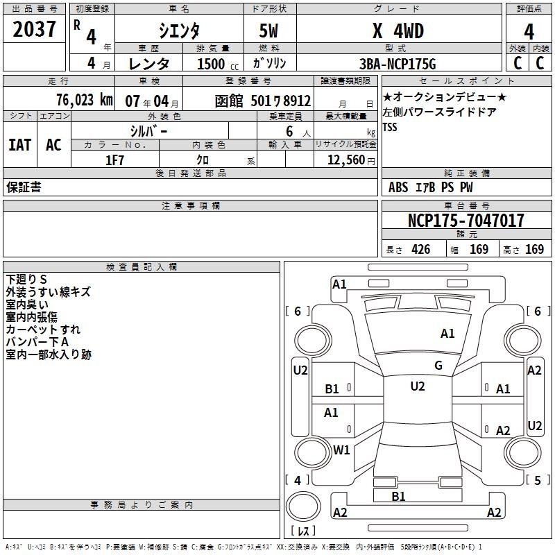 TOYOTA SIENTA - лот 2037