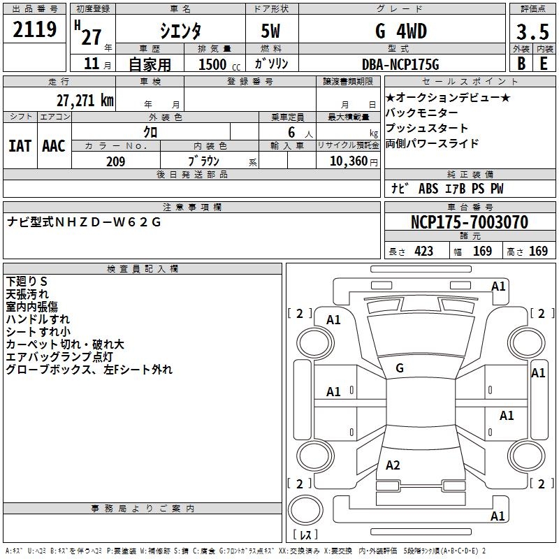 TOYOTA SIENTA - лот 2119