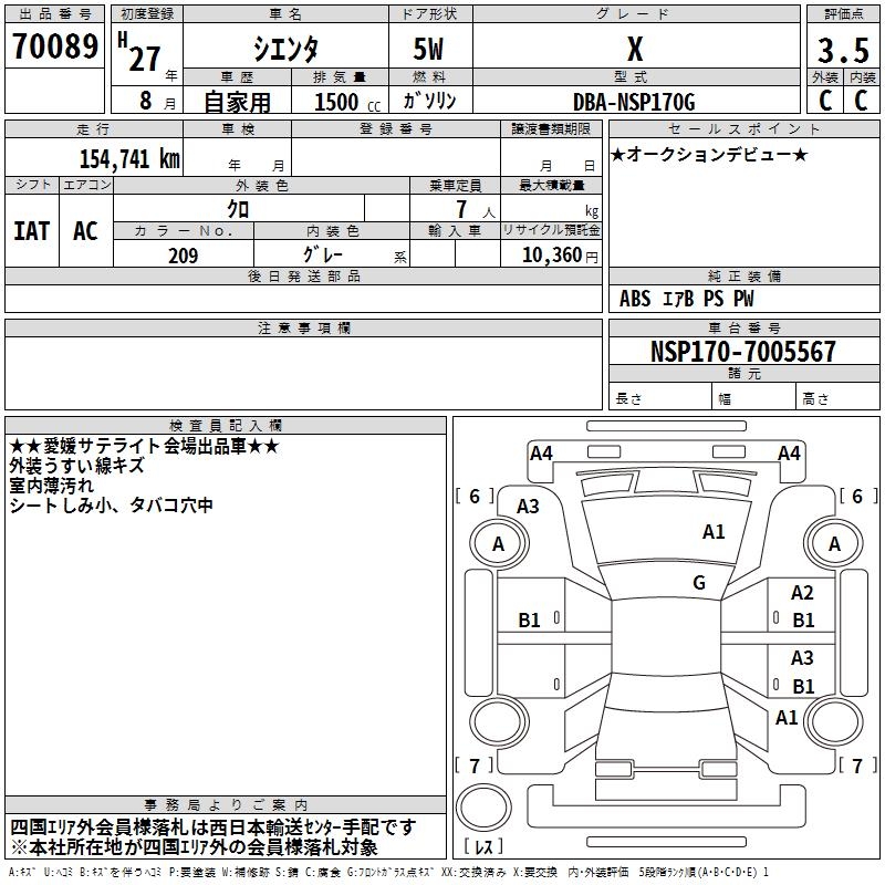 TOYOTA SIENTA - лот 70089