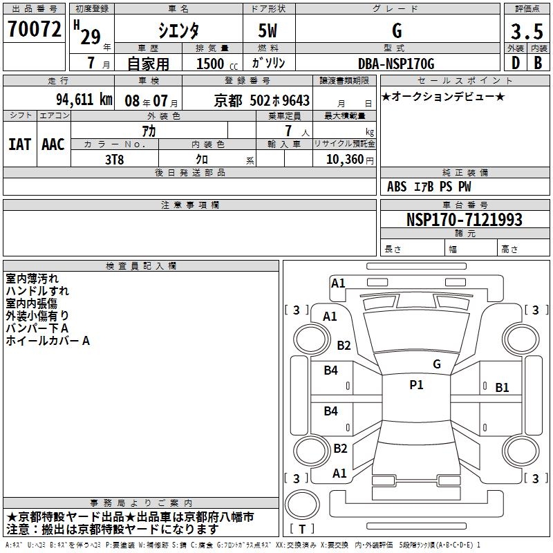 TOYOTA SIENTA - лот 70072