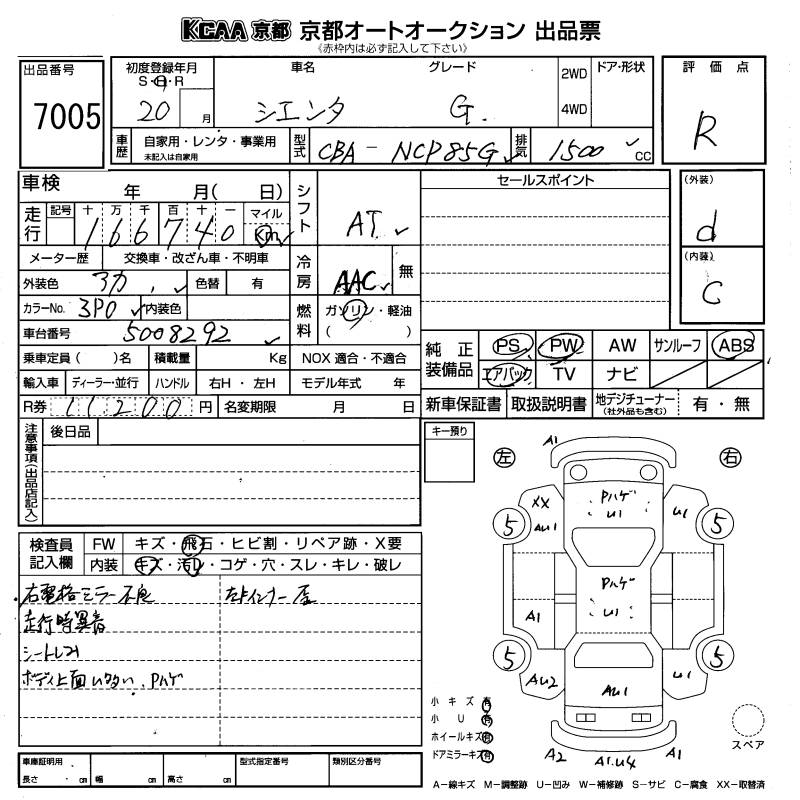 TOYOTA SIENTA - лот 7005