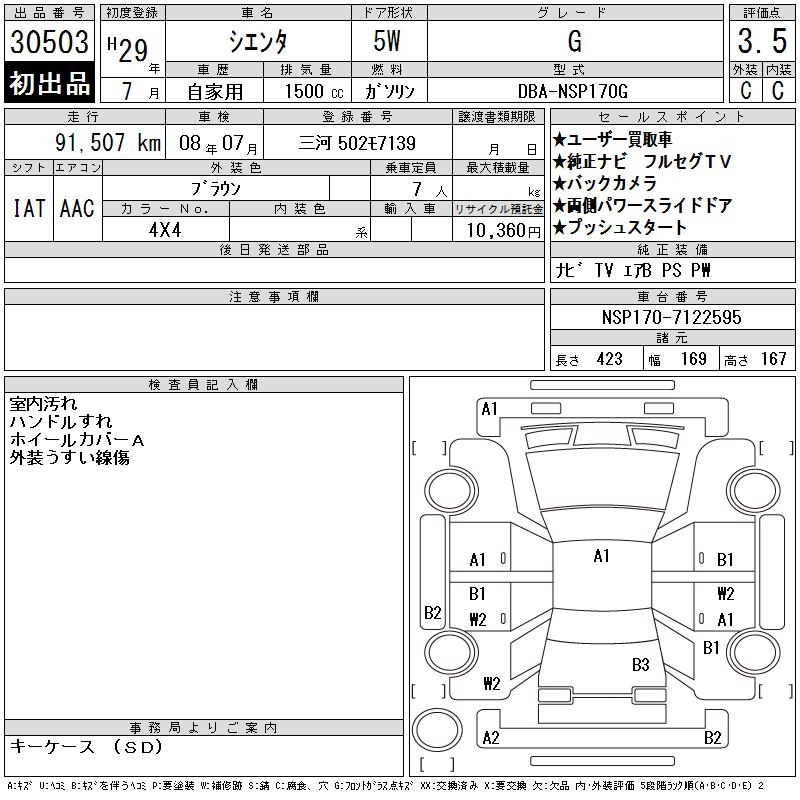 TOYOTA SIENTA - лот 30503