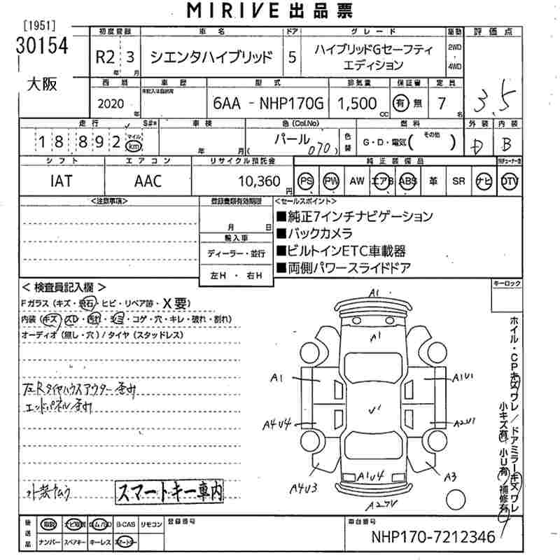 TOYOTA SIENTA - лот 30154